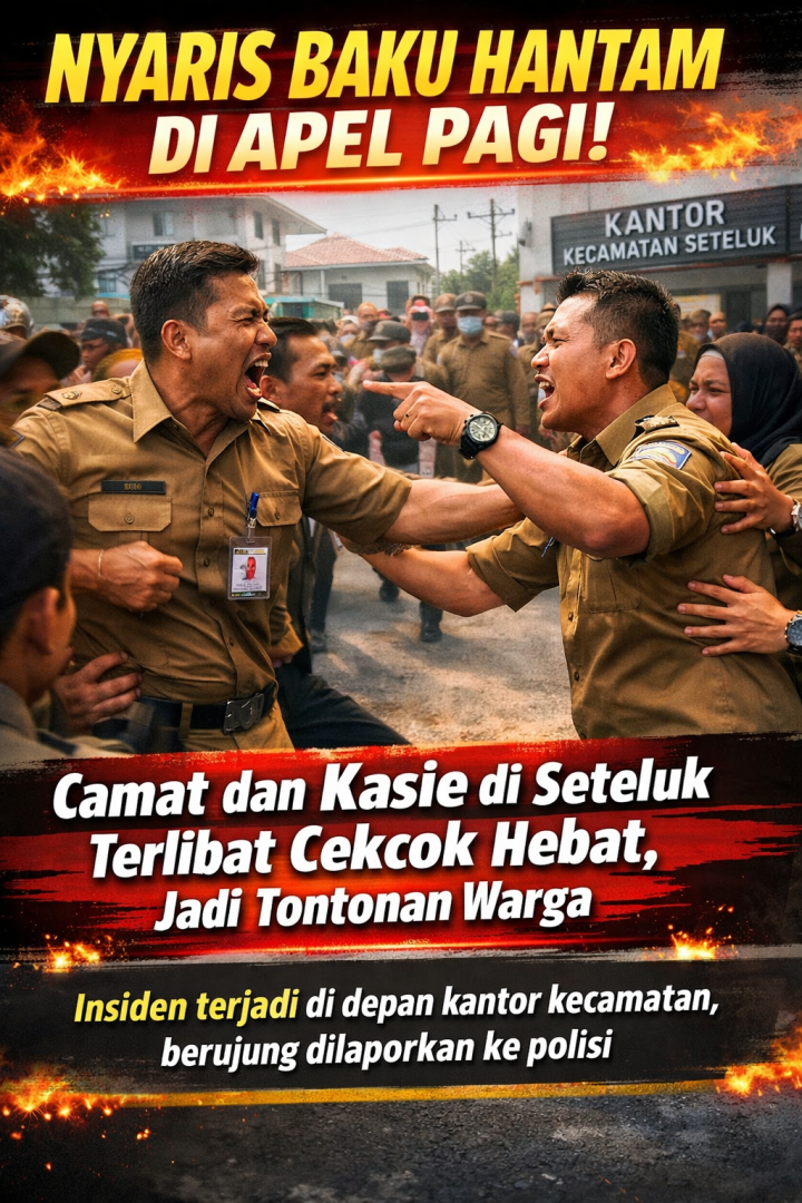 Sumbawa Barat, NTB – Suarajuang.online|Peristiwa yang dinilai mencoreng wibawa aparatur pemerintahan terjadi di Kecamatan Seteluk, Rabu pagi (01/04/2026). Camat Seteluk berinisial “MI” dilaporkan nyaris terlibat adu jotos dengan salah satu kepala seksi (Kasie) berinisial “D” di tengah pelaksanaan apel pagi.